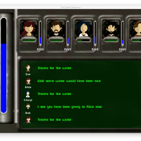 A story driven game set in a post apocalyptic future.. You are in a small group of survivors. You must distribute the remaining water amongst your group. You don't have enough water for all to survive. Use the data available to you to decide who gets water and who doesn't. |