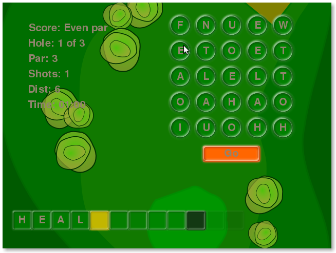 An addictive word game.. Based on a combination of the word game Boggle and golf. |